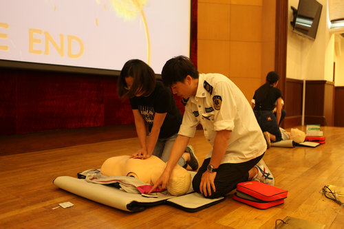 急救中心的老師從“現(xiàn)場急救的步驟”、“心肺復蘇的主要技術(shù)”、“AED的使用方法”、“氣道梗阻和溺水救護”等方面進行了現(xiàn)場急救專業(yè)知識講解和技能演示,培訓中還邀請學員進行心肺復蘇術(shù)實操練習。培訓老師生動的語言、豐富的案例、詳實的數(shù)據(jù),使參與培訓的師生員工初步掌握了應急救護的基本知識與技能,臺上臺下積極互動,現(xiàn)場氣氛熱烈。