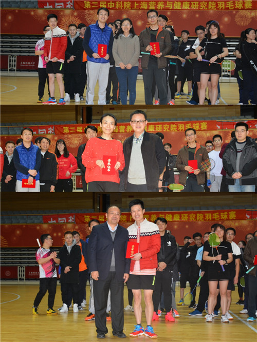 比賽現(xiàn)場,羽球飛梭,運動員精神飽滿,身姿矯捷,大家斗志昂揚,激情四射,各參賽隊伍賽出了風(fēng)格、賽出了水平、賽出了友誼、賽出了營養(yǎng)與健康院的精氣神。經(jīng)過小組循環(huán)賽和決勝淘汰賽的激烈比拼,最后飛羽隊和信息中心隊分別獲得本屆羽毛球冠軍、亞軍,大數(shù)據(jù)中心&營養(yǎng)所聯(lián)隊和PICB二隊并列季軍。上??萍即髮W(xué)乒羽聯(lián)盟負(fù)責(zé)人姚勁松、營養(yǎng)與健康院聯(lián)合辦公室主任孫迪以及人事教育處副處長王明艷為獲獎隊伍頒發(fā)獲獎證書。