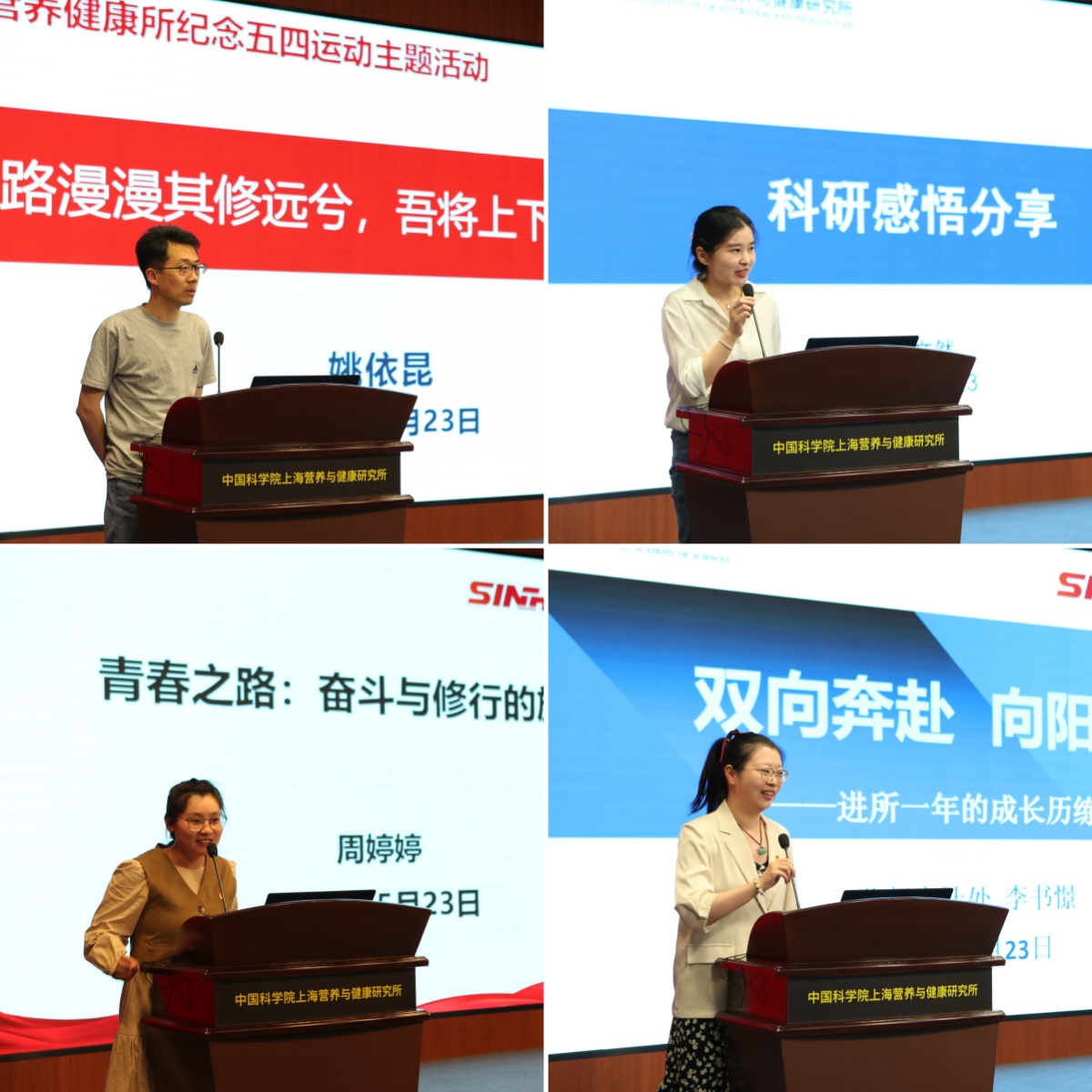5月23日,中國科學(xué)院上海營養(yǎng)與健康研究所舉行“挺膺擔當?shù)Z青春,勇攀科技制高點”紀念五四運動105周年青年主題活動。上海市科技團工委書記胡元穎,中國科學(xué)院上海分院人事人才處副處長、機關(guān)與直屬單位團委書記朱泰來,中國科學(xué)院上海營養(yǎng)與健康研究所黨委書記瞿榮輝,紀委書記、工會主席曹永出席活動。各團支部代表、優(yōu)秀青年、研究生及青年職工代表等100余人參加?;顒佑蔂I養(yǎng)與健康所團委書記顧晶晶主持。