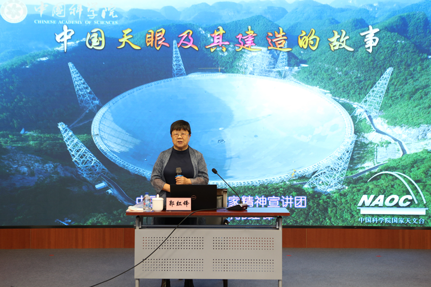 中國科學(xué)院科學(xué)家精神宣講團成員高級工程師郭紅鋒受邀作《中國“天眼之父”南仁東的故事》專題報告。她聲情并茂地講述了南仁東先生傾其一生投入“中國天眼”建設(shè)的故事以及22年建設(shè)歷程中的典型事例,激勵青年用五四精神之火淬煉自己,傳承科學(xué)家精神,以干事創(chuàng)業(yè)的熱情和砥礪奮進的信心,在各種重大科技攻關(guān)任務(wù)中擔重任、挑大梁,書寫出亮眼的青春答卷。
