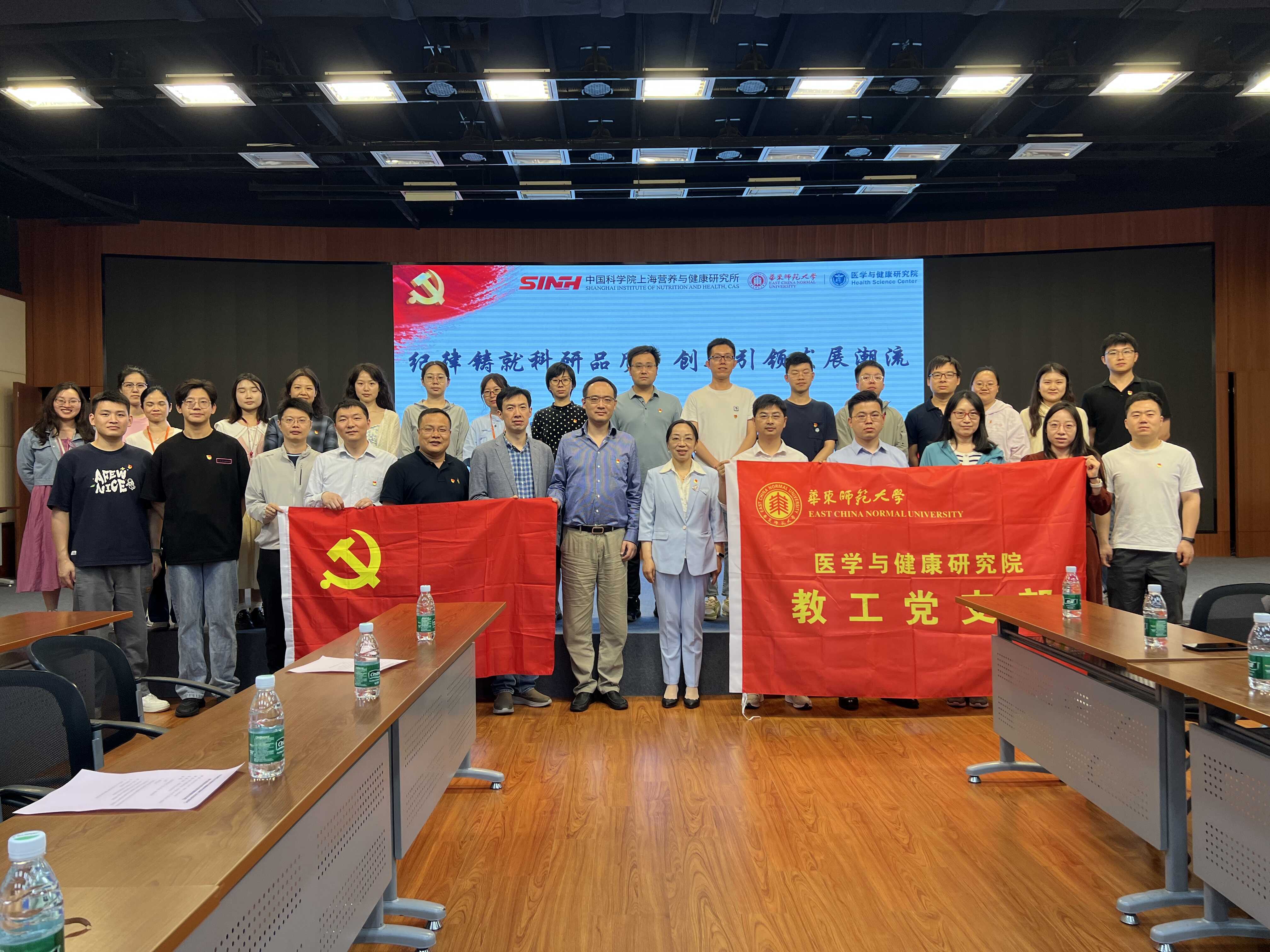 為進一步鞏固黨紀學習教育的成效,培養(yǎng)科研誠信的核心價值觀,促進科技創(chuàng)新的交流與合作,5月30日下午,中國科學院上海營養(yǎng)與健康研究所營養(yǎng)代謝與食品安全第一、第二黨支部攜手上海華東師范大學醫(yī)學與健康研究院教工黨支部,共同開展了以“紀律鑄就科研品質,創(chuàng)新引領發(fā)展潮流”為主題的黨建聯學聯建活動。華東師范大學醫(yī)學與健康研究院副院長、教工黨支部書記徐敏華,研究組長、支部委員胡小明研究員,藥學院副教授朱書雷,營養(yǎng)與健康所副所長汪思佳,黨委委員、研究組長、黨支部書記應浩研究員,研究組長、黨支部書記周犇研究員以及雙方支部共40余名黨員骨干參與活動。會議由周犇主持。