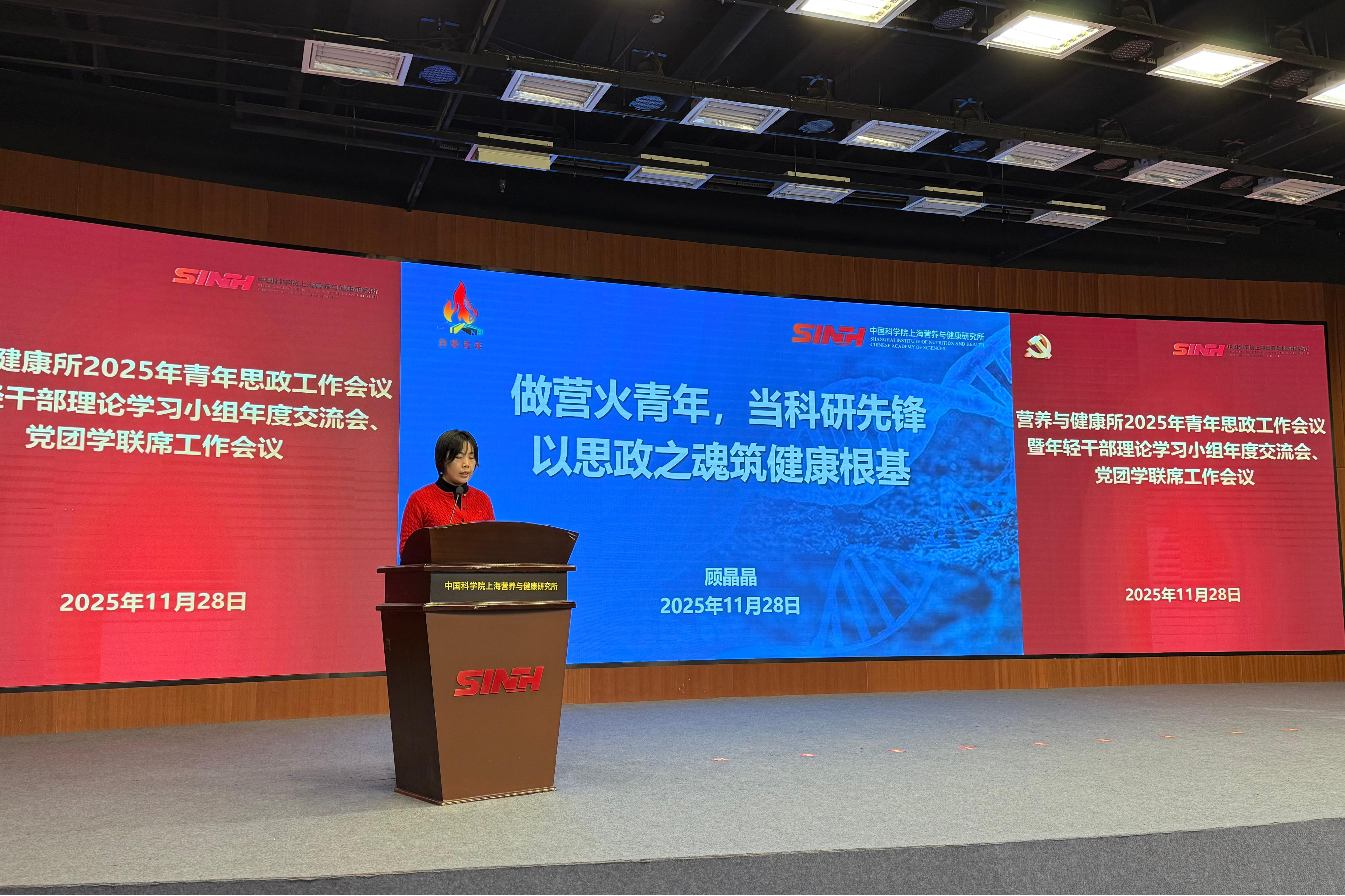 11月28日下午,為進(jìn)一步推動青年干部和科研人員在研究所高質(zhì)量發(fā)展新征程中展現(xiàn)新?lián)?dāng)、實現(xiàn)新作為,中國科學(xué)院上海營養(yǎng)與健康研究所召開2025年青年思政工作會議暨黨團(tuán)學(xué)聯(lián)席工作會議。營養(yǎng)與健康所黨委書記瞿榮輝、紀(jì)委書記曹永、相關(guān)職能部門和黨組織負(fù)責(zé)人、輔導(dǎo)員代表、各支部青年委員、青年理論學(xué)習(xí)小組組長及研究生代表近50人參會。
