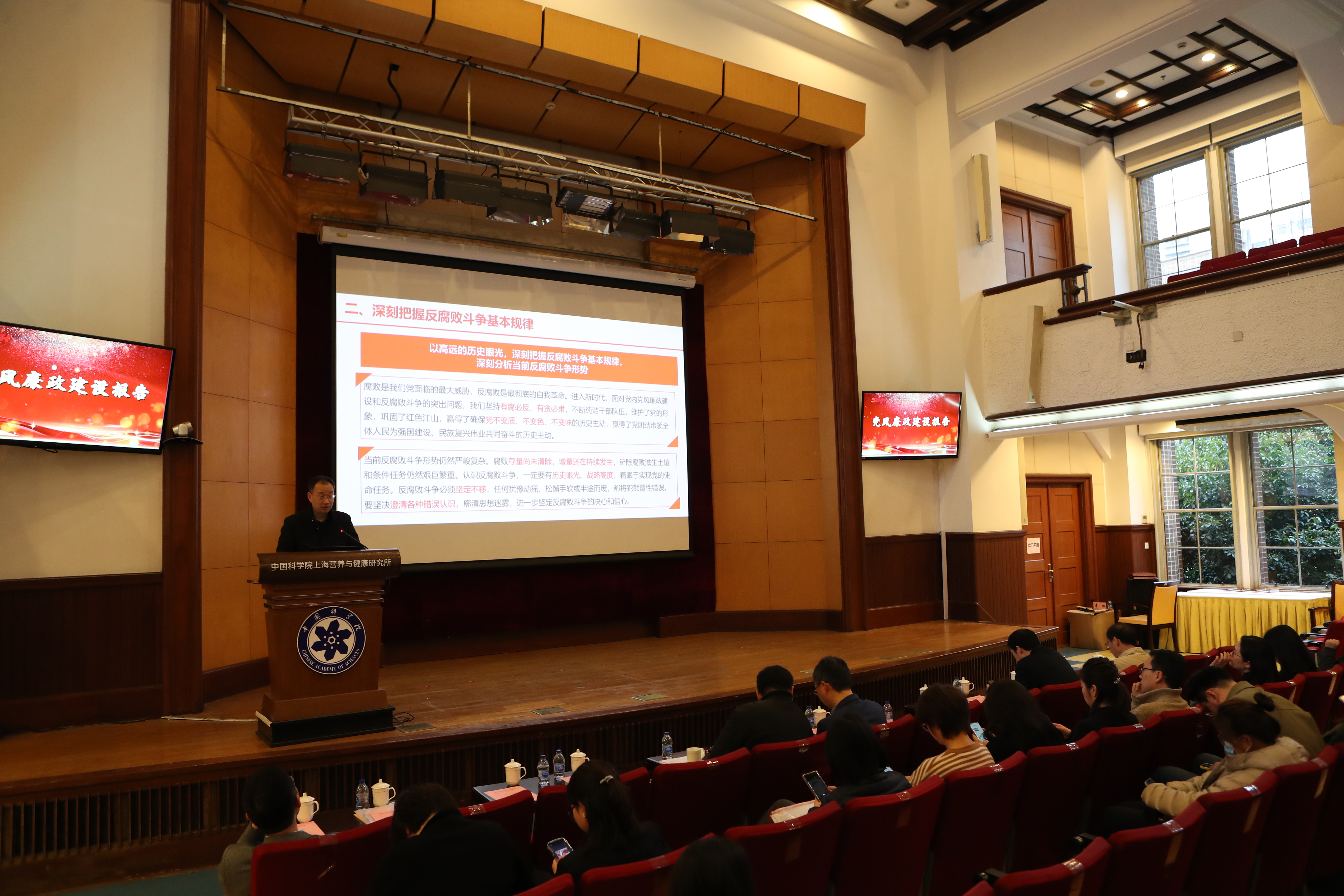 3月14日下午,中國科學(xué)院上海營養(yǎng)與健康研究所召開2025年度黨風(fēng)廉政建設(shè)大會(huì)。研究所領(lǐng)導(dǎo)班子成員、黨委委員、所務(wù)委員、紀(jì)委委員、各基層黨組織及群團(tuán)組織負(fù)責(zé)人、職工代表,副高及以上專業(yè)技術(shù)人員、職能部門人員等120余人參加會(huì)議。會(huì)議由紀(jì)委書記曹永主持。