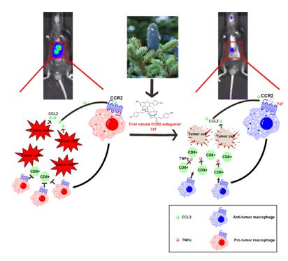 7月17日,《細(xì)胞》出版社和《柳葉刀》雜志聯(lián)合支持的EBioMedicine雜志在線發(fā)表了中國科學(xué)院上海生科院(人口健康領(lǐng)域)王慧研究組的研究論文“A Natural CCR2 Antagonist Relieves Tumor-associated Macrophage-mediated Immunosuppression to Produce a Therapeutic Effect for Liver Cancer”,該研究發(fā)現(xiàn)了一個(gè)提取自長苞冷杉的天然CCR2拮抗劑(編號747),可通過解除腫瘤相關(guān)巨噬細(xì)胞引起的免疫抑制微環(huán)境來抑制肝癌,同時(shí)增敏低劑量索拉菲尼的治療效果。