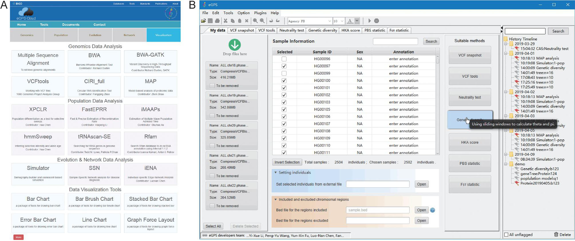 圖A、eGPS Cloud網(wǎng)頁界面,共包括15個軟件以及20個可視化工具。