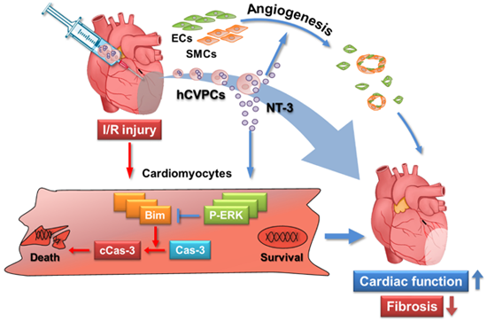 圖示:hCVPCs/NT-3對(duì)心肌缺血/再灌損傷的修復(fù)作用