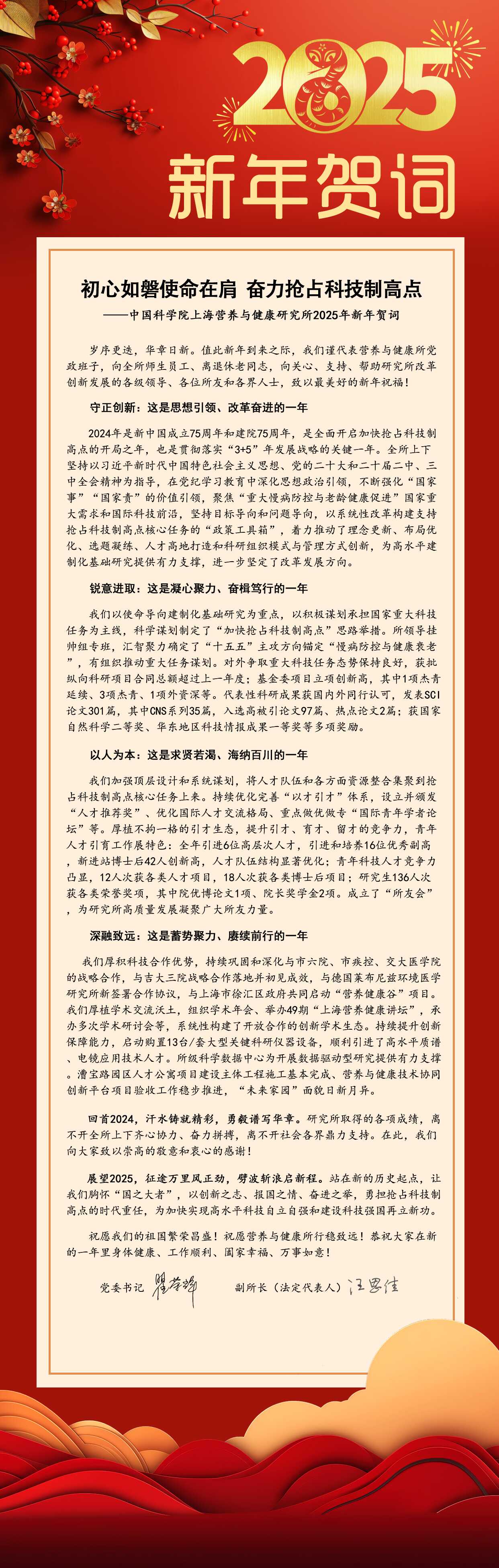中國科學(xué)院上海營養(yǎng)與健康研究所2025年新年賀詞