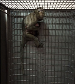 兩天過去了,由于早產(chǎn)的小家伙一直很虛弱,需要母乳來強化身體,我們開始為它尋找代乳媽媽。為了讓小家伙適應(yīng)母乳,我們選了好幾只代乳流產(chǎn)母猴,讓小家伙學(xué)習(xí)吸食母乳,每天重復(fù)多次。幾天之后,我們將它放入這幾天喂食的流產(chǎn)母猴群中,為防止母猴對其做出危險舉動,又是新一輪的守衛(wèi)工作在等待著我們。 ?????