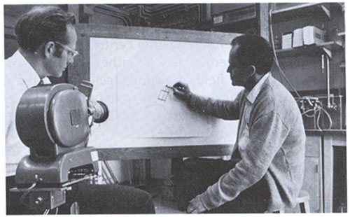 休伯爾(1926—2013)與威澤爾(1924—)在研究視覺神經(jīng)機制?