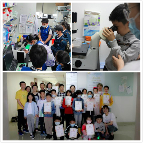 在園區(qū)開放活動期間,分子心臟學研究組、干細胞研究組、核酸與分子醫(yī)學研究組以及信號轉(zhuǎn)導與代謝研究組,在楊黃恬、金穎、荊清、李于等多位研究員支持下開放實驗室,約80余名學齡兒童預約參觀。通過科普報告、實驗觀察、動手實踐等方式近距離觀察、體驗、實踐科學知識。其中,斑馬魚心臟切片觀察、熒光顯微鏡觀測細胞、樣本免疫熒光處理實驗、小鼠血糖測量等活動深受歡迎與喜愛,零距離接觸各種科普體驗活動帶來的新奇有趣,把深奧的科學知識轉(zhuǎn)化成孩子們易于接受和理解的內(nèi)容,充分激發(fā)了他們對科學的熱愛和探索的興趣。