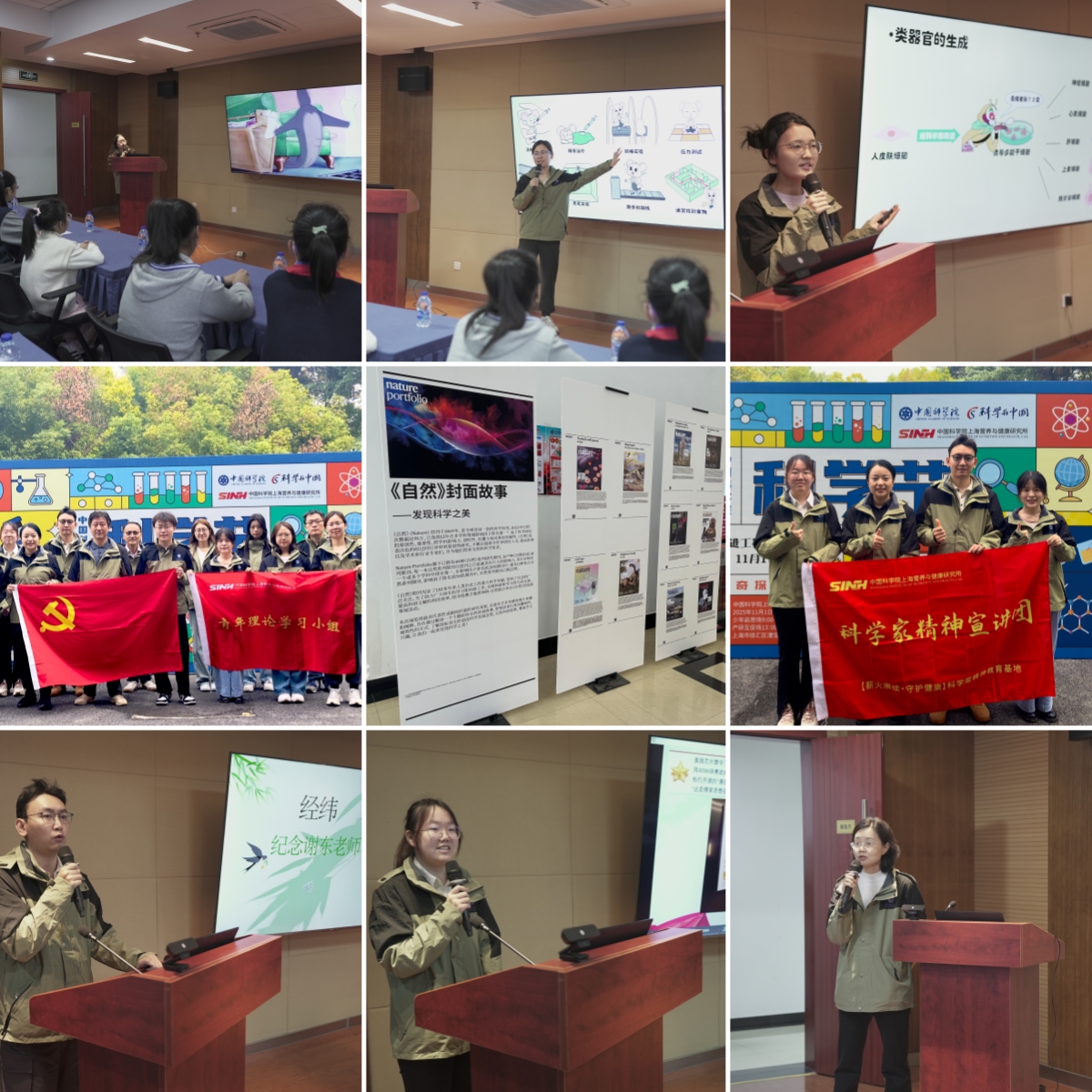 工程實(shí)驗(yàn)室一樓大廳依次陳列了各研發(fā)單元展板、《自然》封面故事展和研究所特色品牌GRAD科學(xué)圖片展,以“發(fā)現(xiàn)科學(xué)之美”為線索串聯(lián)起科研背后美的瞬間,引得不少學(xué)生與家長(zhǎng)駐足。內(nèi)場(chǎng)的科普講解環(huán)節(jié),三位曾獲院科普講解大賽優(yōu)秀獎(jiǎng)的選手通過(guò)一個(gè)個(gè)生動(dòng)有趣的故事將科學(xué)知識(shí)、科研成果娓娓道來(lái);研究所科學(xué)家精神宣講團(tuán)成員也從不同角度為臺(tái)下聽(tīng)眾展現(xiàn)了老一輩科學(xué)家與新時(shí)代科學(xué)家的精神風(fēng)骨。