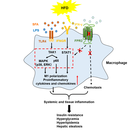 圖:敲除Fpr2通過抑制代謝組織慢性炎癥而改善高脂飲食導(dǎo)致的糖脂代謝紊亂