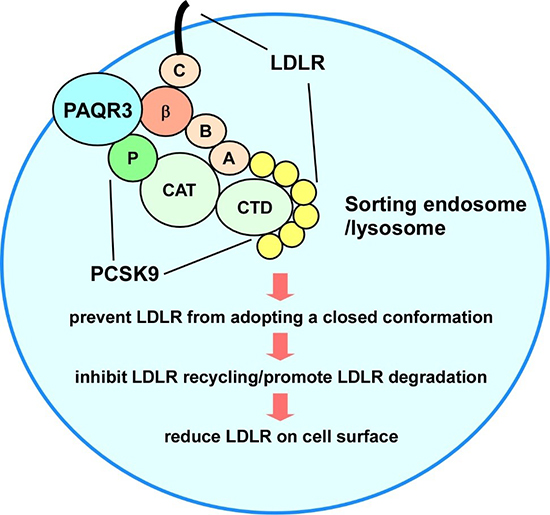 圖示:PAQR3調(diào)控LDLR-PCSK9相互作用的模式圖