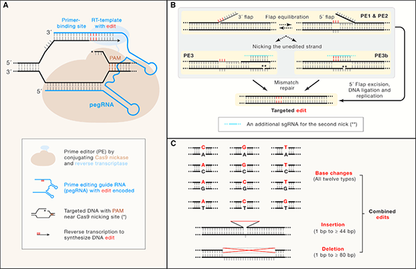 (A)PE系統(tǒng)示意圖(B)PE系統(tǒng)的創(chuàng)建歷程(C)PE系統(tǒng)可以介導(dǎo)的編輯類型