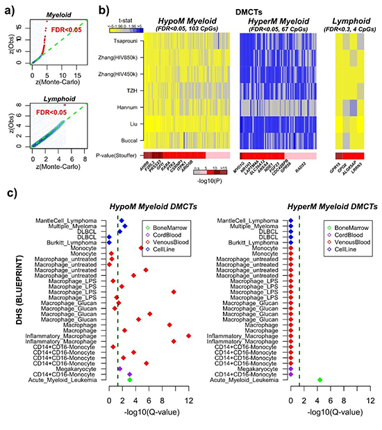 圖:Meta分析揭示吸煙相關(guān)DNA甲基化信號(hào)主要出現(xiàn)在髓樣細(xì)胞