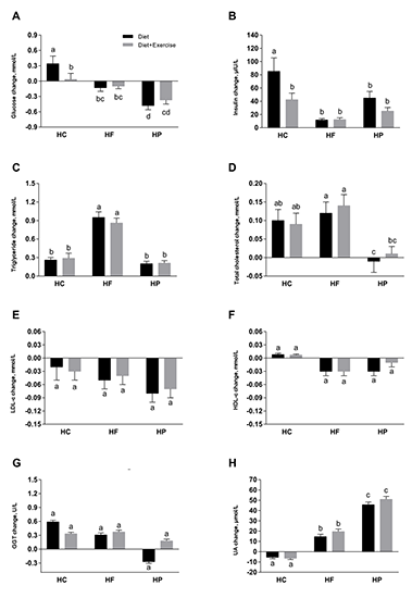 在本項3×2×2的隨機對照、交叉設計的短期膳食干預研究中,林旭研究員團隊招募了20名正常體重和20名超重/肥胖18-45周歲的男性志愿者,依次以隨機順序給予3種不同宏量營養(yǎng)素比例的等能量實驗膳食(高碳水+低脂、低碳水+高脂、高蛋白+低脂),每種膳食連續(xù)食用兩天:在第一天(靜息日)通過間接測熱法(indirect calorimetry)測量收集空腹、餐后0、1、2、3小時多個時間點的靜息能量消耗,在第二天(運動日)測量餐前靜息時和餐后中等強度單車運動30分鐘的能量消耗。在靜息日和運動日均采集空腹和餐后2小時血液樣本。不同膳食間的洗脫期為10天。通過系統(tǒng)分析了3種膳食干預前后的數(shù)據(jù)發(fā)現(xiàn):1)盡管3種膳食在餐后總能量消耗、膳食熱效應和主觀飽腹感方面并未發(fā)現(xiàn)顯著差異;中等強度運動能顯著增加高碳水膳食餐后的碳水化合物氧化速率,并顯著降低脂肪氧化速率;2)高碳水膳食餐后2小時的血糖和胰島素增量均顯著高于其余2種膳食;高脂膳食餐后2小時的甘油三酯增量最大;高蛋白膳食餐后2小時的血糖和總膽固醇增量最小。運動能顯著減弱高碳水膳食的提升血糖和胰島素的效應(圖1)。3)通過與尹慧勇研究員團隊合作開展非靶向代謝組檢測,發(fā)現(xiàn)了69種能顯著區(qū)分3種膳食餐后2小時應答的效應代謝組標記物,主要富集于精氨酸合成、半胱氨酸和甲硫氨酸代謝,以及甘氨酸、絲氨酸和蘇氨酸代謝通路,其中效應值最高的氨基酸為同型半胱氨酸、組氨酸、色氨酸等(圖2)。4)超重/肥胖志愿者比正常體重個體表現(xiàn)出較低的碳水化合物氧化速率和較高的脂肪氧化速率;較大的餐后胰島素和甘油三酯增量,以及較多的餐后代謝物變化數(shù)量和較高的變化幅度,提示超重肥胖個體在餐后重獲代謝穩(wěn)態(tài)的能力弱于正常體重個體。總之,相較于宏量營養(yǎng)素,膳食總能量對餐后能量消耗的影響可能更顯著,而不同宏量營養(yǎng)素比例的等能量膳食對餐后心血管代謝指標具有不同的影響,且受到體重和運動的調(diào)控。本研究為今后精準的減重干預方案的制定提供了科學依據(jù)。