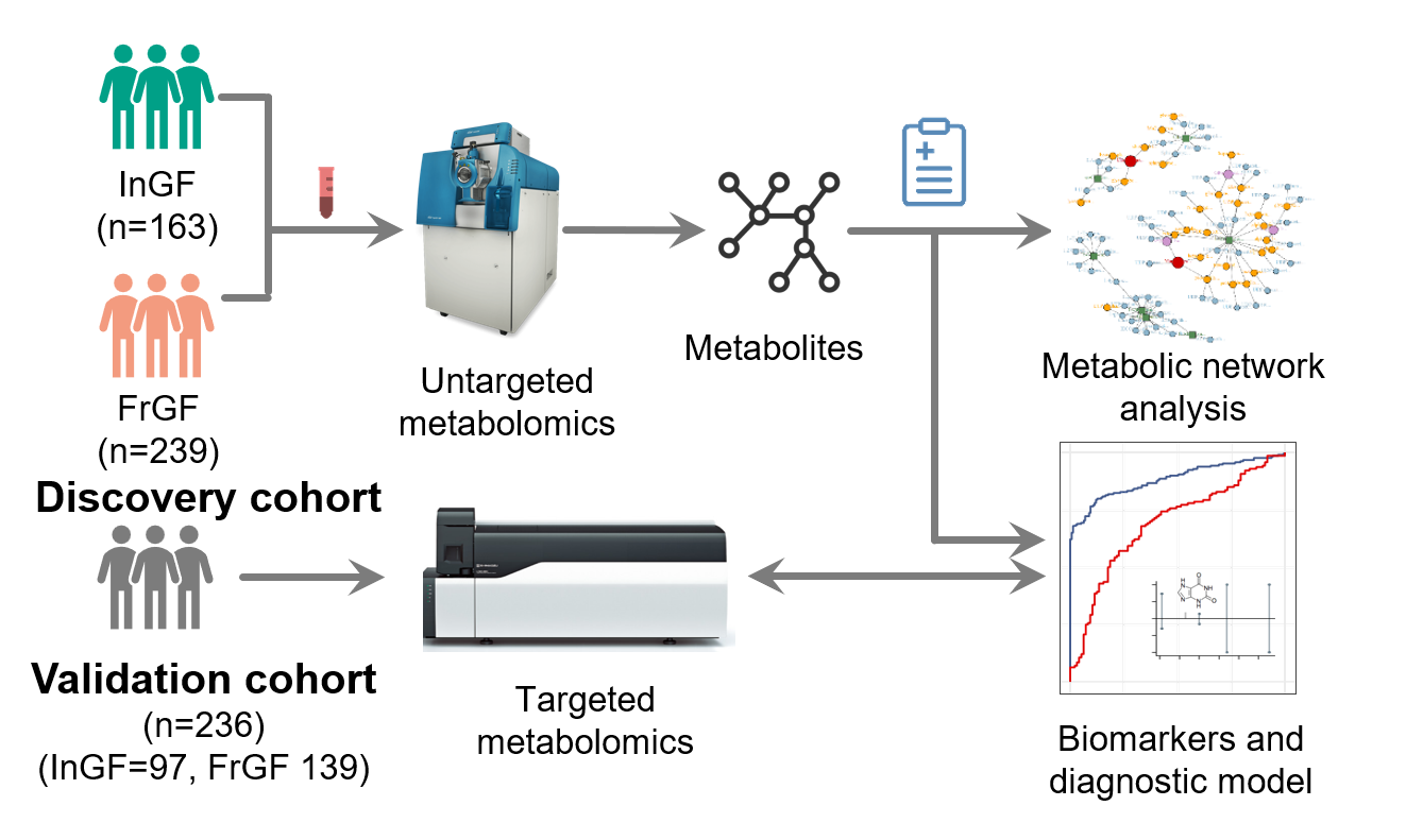 圖注: 利用代謝組學(xué)與機器學(xué)習(xí)研究頻發(fā)與偶發(fā)痛風(fēng)患者的血清代謝組差異并研發(fā)痛風(fēng)頻發(fā)風(fēng)險預(yù)測模型