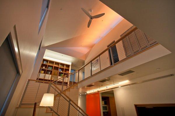 當班尼特和歐哈拉在炎熱的一天第一次踏進這座未來住宅,這里的降溫系統(tǒng)讓他們印象深刻。房子向南的窗戶外有傾斜的屋檐,能在一天最熱的時候擋住太陽光,但在冬天又不會妨礙斜照的陽光溫暖屋子。房屋的墻壁比普通房子更厚,能起到更好的隔熱和保溫效果,而屋頂?shù)牟牧蠒㈥柟夥瓷涠皇俏铡佭^光的混凝土地板也能更好地隔熱保溫。這棟房子所用的混泥土參雜有天然的火山灰以減少水泥的使用,降低二氧化碳排放。