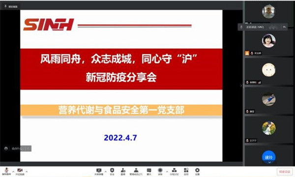 4月8日,營養(yǎng)代謝與食品安全第一黨支部召開云端疫情防控工作交流會。會上,第一批PCR檢測志愿者代表王嵐和徐小棟從檢測流程、工作環(huán)境、點滴故事等多方面為全體黨員介紹了PCR志愿服務。會后,全體黨員就核酸檢測、流程優(yōu)化等科研問題進行了專項研討。