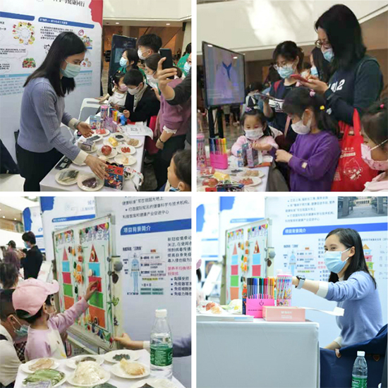 在科學(xué)集市上,為公眾準(zhǔn)備了主題展板與問卷、膳食寶塔貼畫和膳食模型展示等三道營(yíng)養(yǎng)“大餐”。