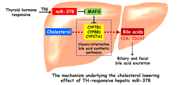 圖1 受TH調(diào)控的肝臟miR-378調(diào)節(jié)膽固醇和膽汁酸代謝的作用機(jī)制