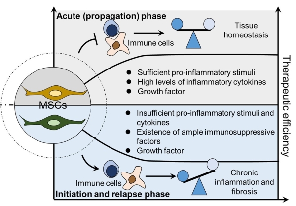 圖注:間充質(zhì)干細(xì)胞(mesenchymal stem cells, MSCs)免疫調(diào)節(jié)可塑性及其在炎癥性疾病治療中的應(yīng)用潛能。