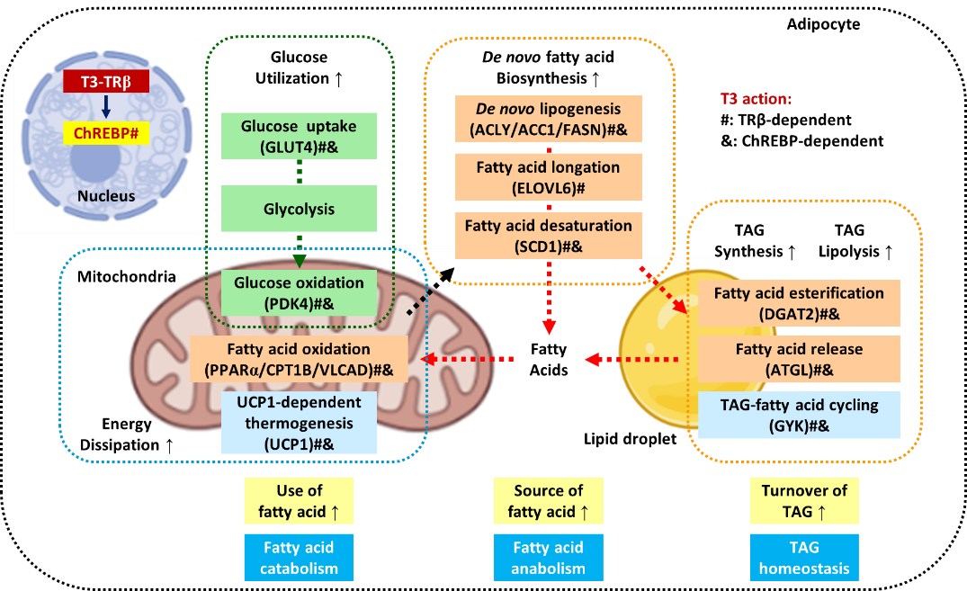 圖注:脂肪細(xì)胞甲狀腺激素信號(hào)通路對(duì)胞內(nèi)代謝途徑的調(diào)控