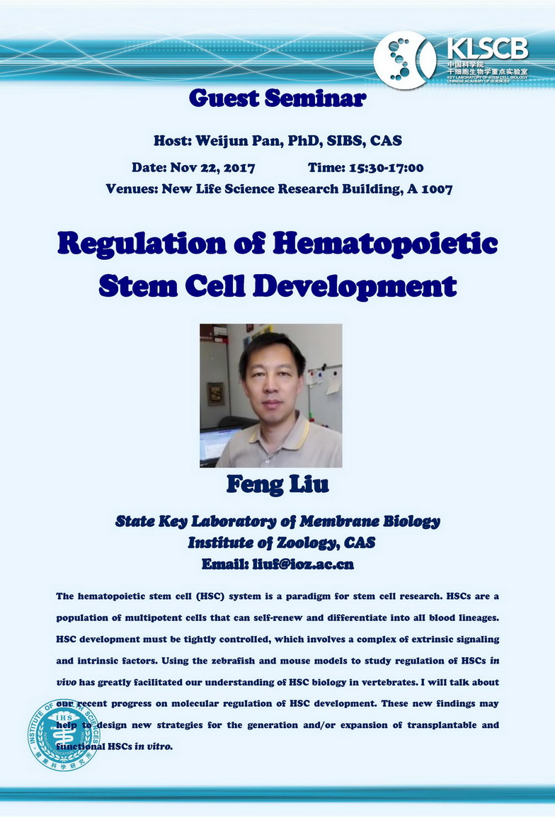 中科院干細(xì)胞生物學(xué)重點(diǎn)實(shí)驗(yàn)室學(xué)術(shù)報(bào)告:Regulation of Hematopoietic Stem Cell Development