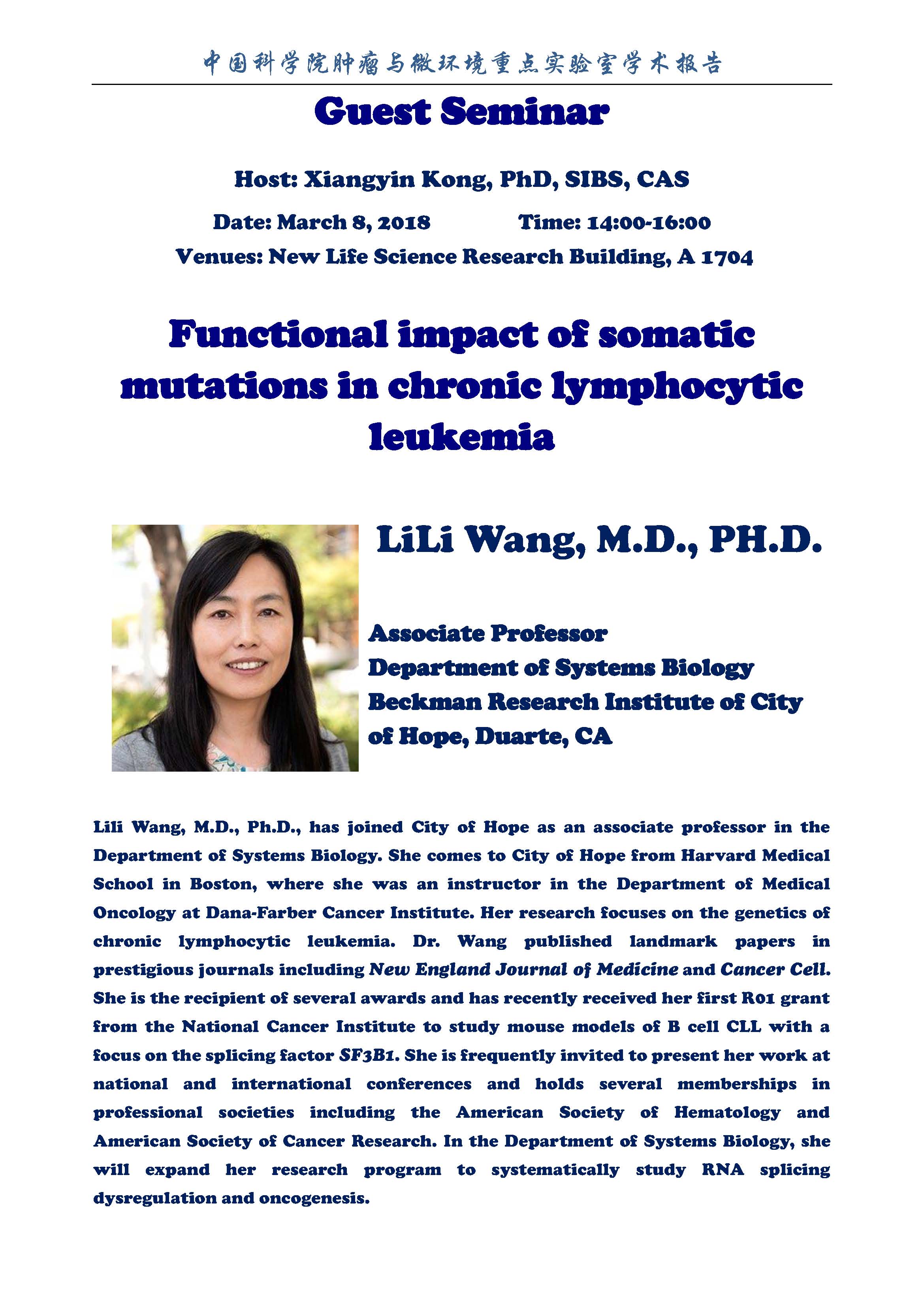 中科院腫瘤與微環(huán)境重點(diǎn)實(shí)驗(yàn)室學(xué)術(shù)報(bào)告:Functional impact of somatic mutations in chronic lymphocytic leukemia
