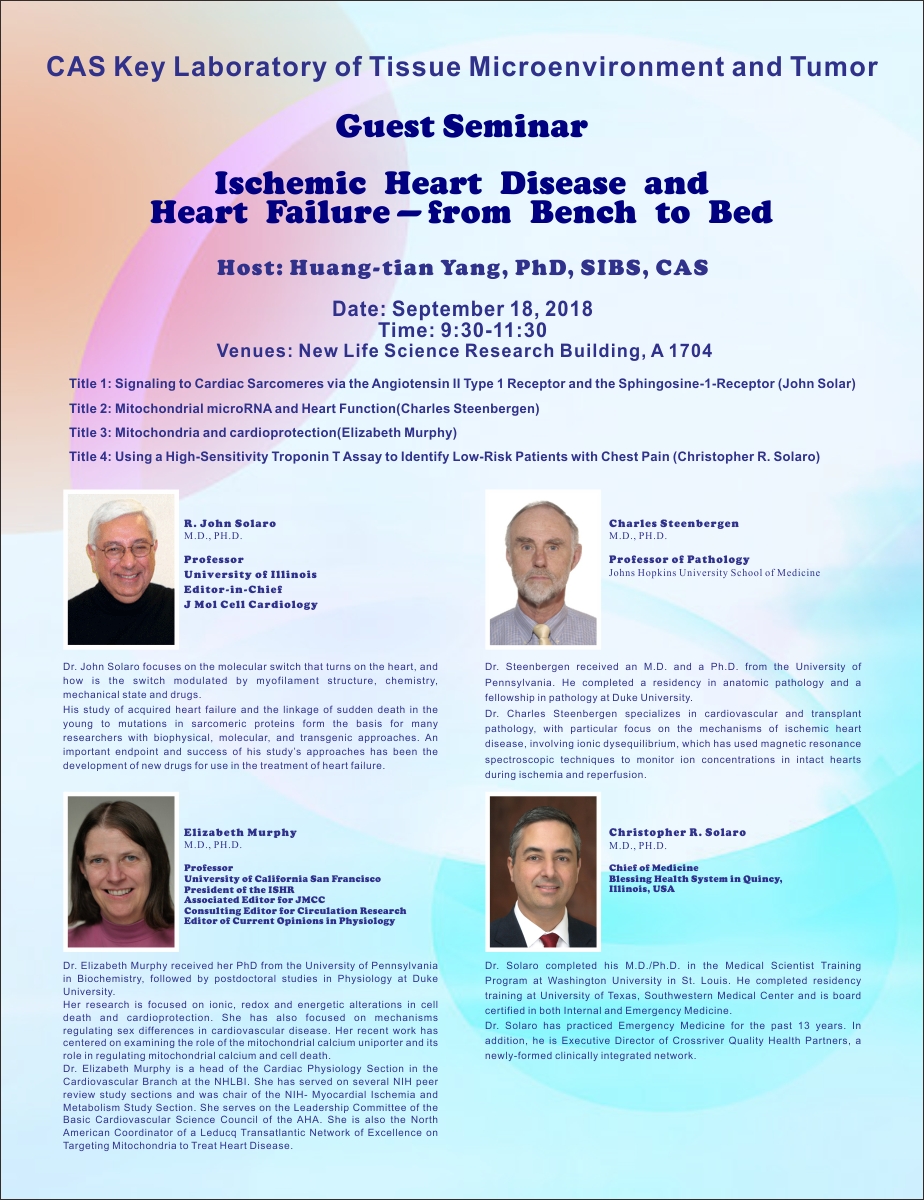 中科院腫瘤與微環(huán)境重點實驗室學術報告:Ischemic Heart Disease and Heart failure--from Bench to Bed