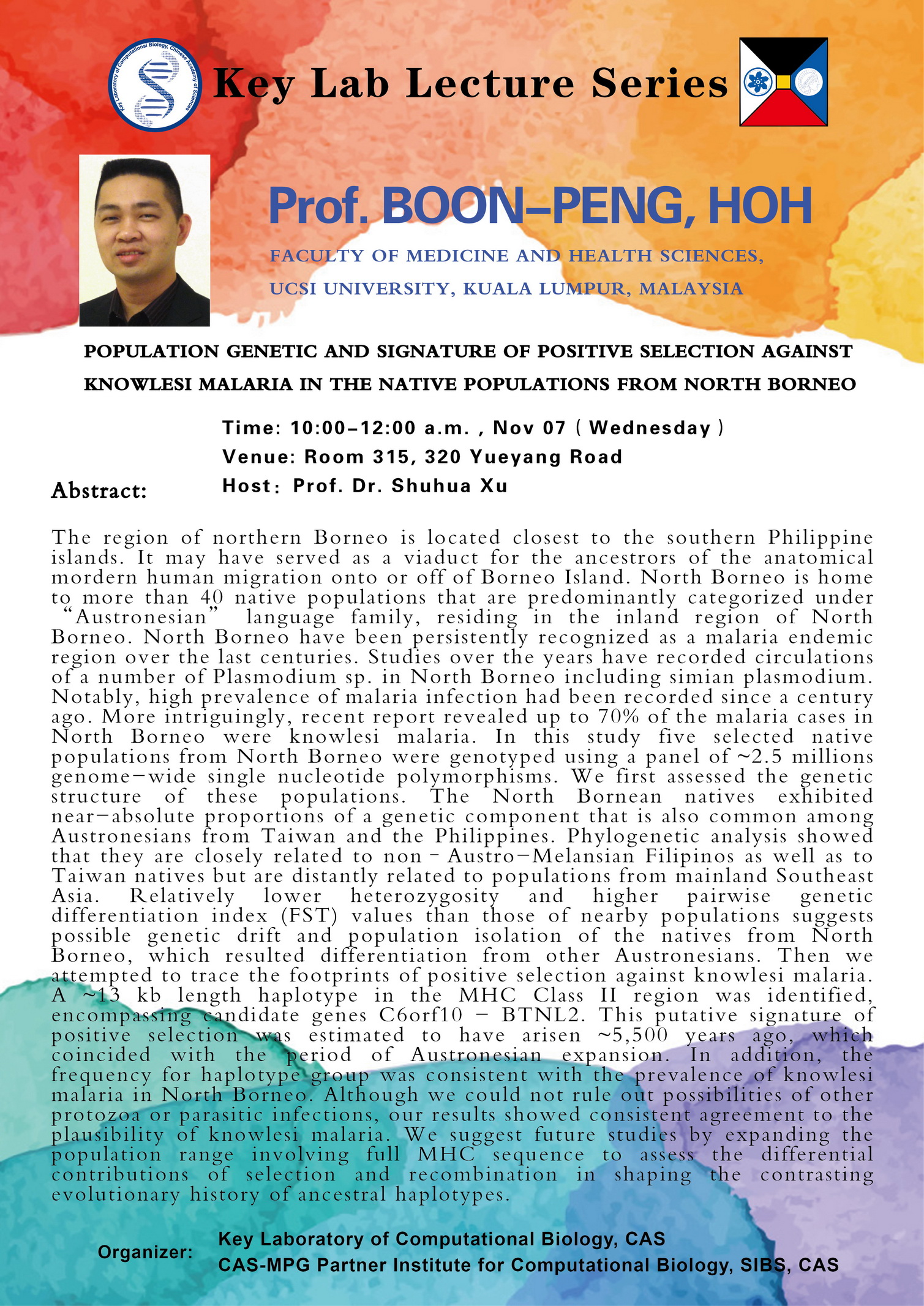 中科院計算生物學(xué)重點實驗室學(xué)術(shù)報告:POPULATION GENETIC AND SIGNATURE OF POSITIVE SELECTION AGAINST KNOWLESI MALARIA IN THE NATIVE POPULATIONS FROM NORTH BORNEO