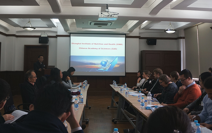 上海營(yíng)養(yǎng)與健康研究院院長(zhǎng)助理胡國(guó)宏研究員歡迎了代表團(tuán)一行,介紹了研究院,重點(diǎn)強(qiáng)調(diào)了研究生教育情況,并宣傳了博士后招收。生化與細(xì)胞所黨委副書(shū)記、紀(jì)委書(shū)記陳劍峰研究員介紹了研究所概況。赫爾辛基大學(xué)Erkki Raulo博士簡(jiǎn)介了該校生命科學(xué)研究和研究生培養(yǎng)情況。