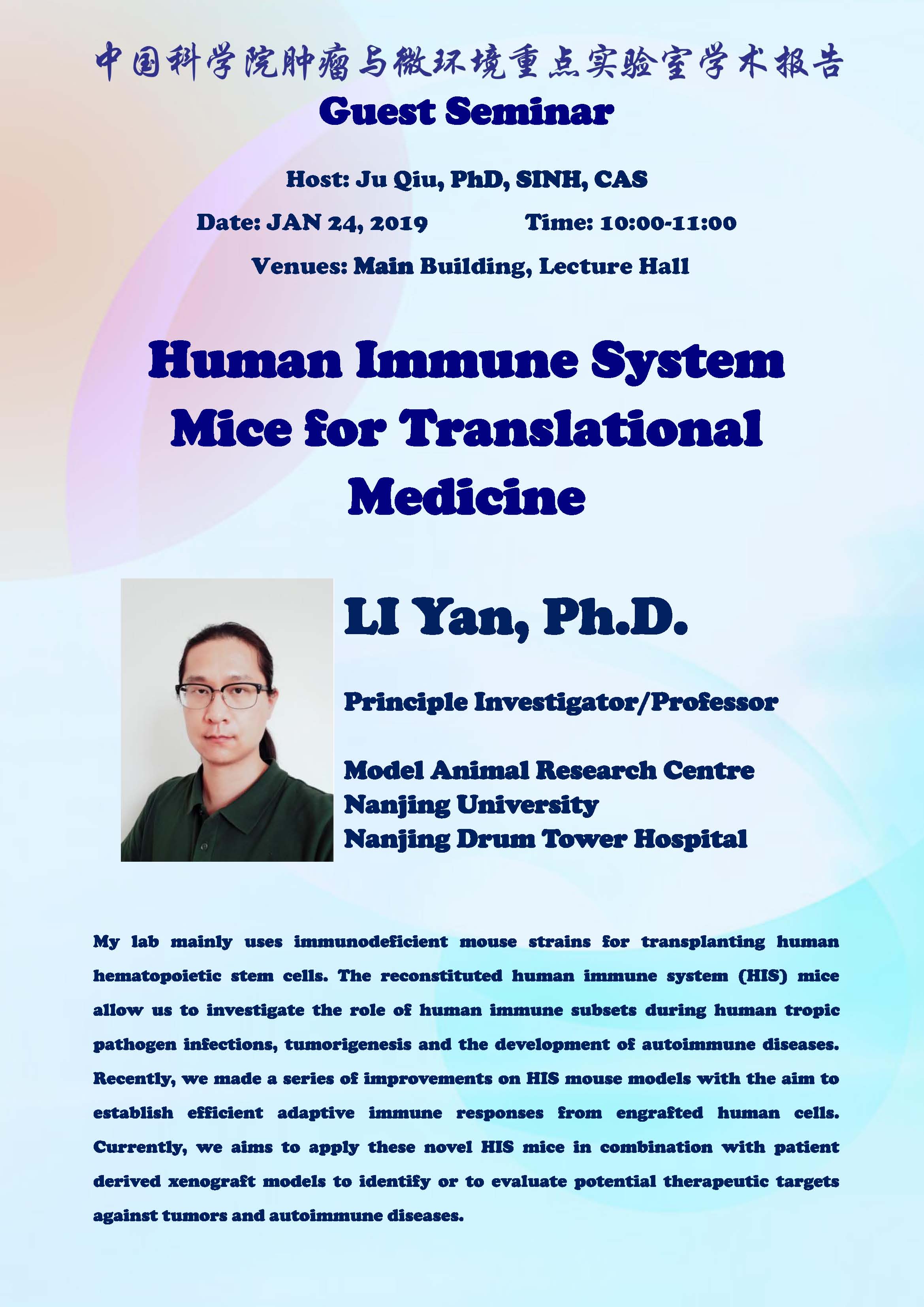 中科院腫瘤與微環(huán)境重點(diǎn)實(shí)驗(yàn)室學(xué)術(shù)報(bào)告:Human Immune System Mice for Translational Medicine
