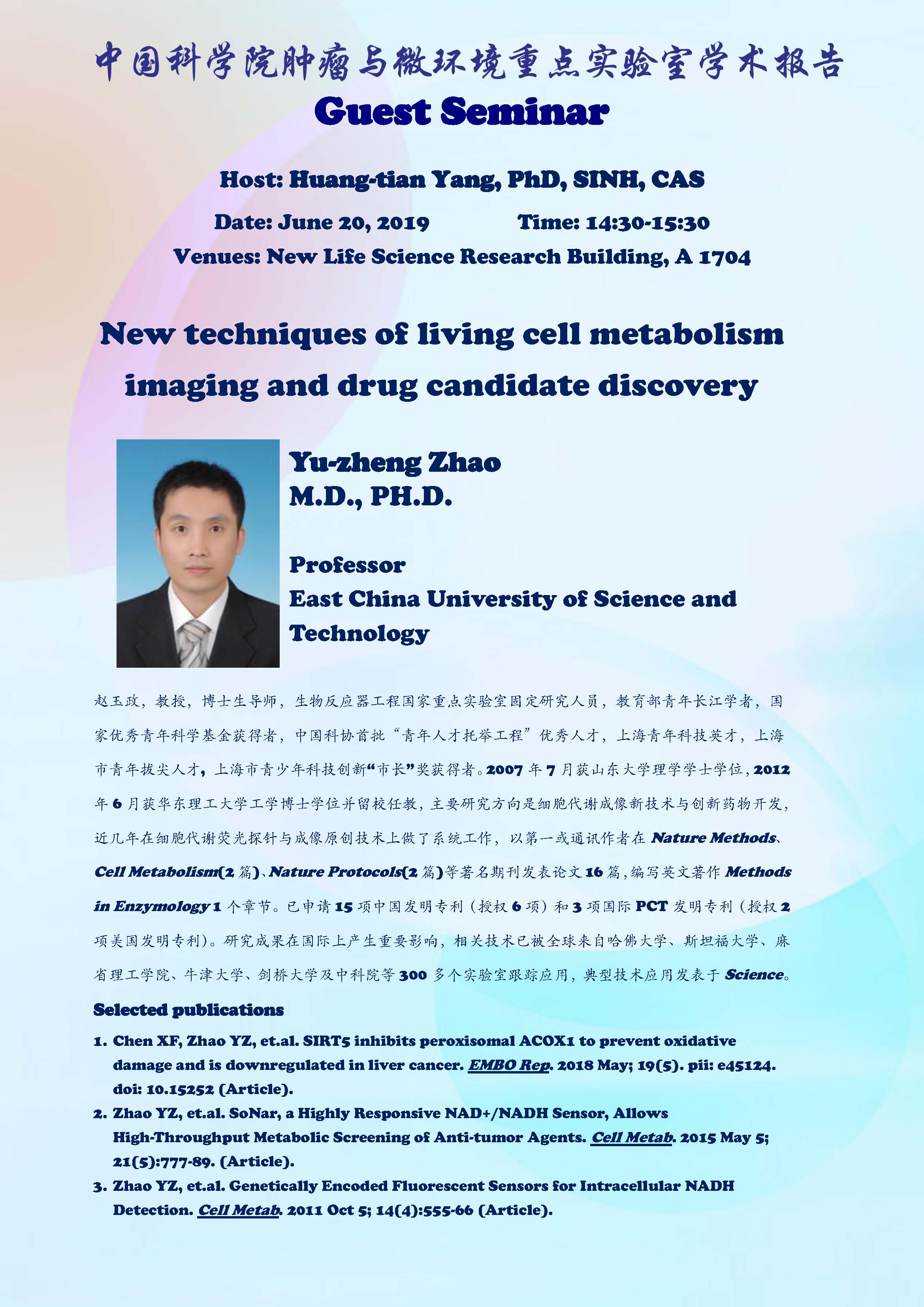 中科院腫瘤與微環(huán)境重點(diǎn)實(shí)驗(yàn)室學(xué)術(shù)報(bào)告:New techniques of living cell metabolism imaging and drug candidate discovery