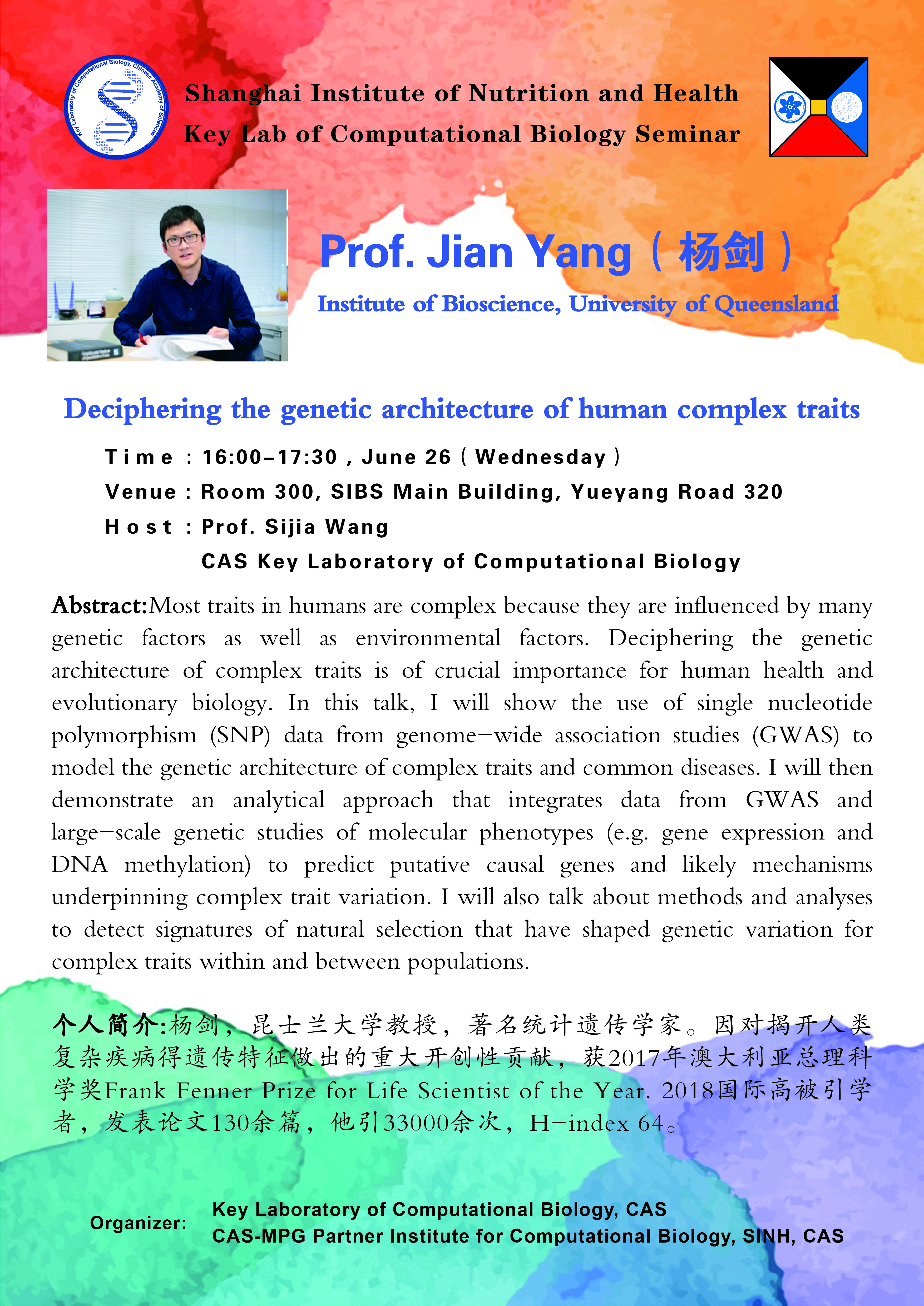 中科院上海營(yíng)養(yǎng)與健康研究所固定學(xué)術(shù)報(bào)告:Deciphering the genetic architecture of human complex traits