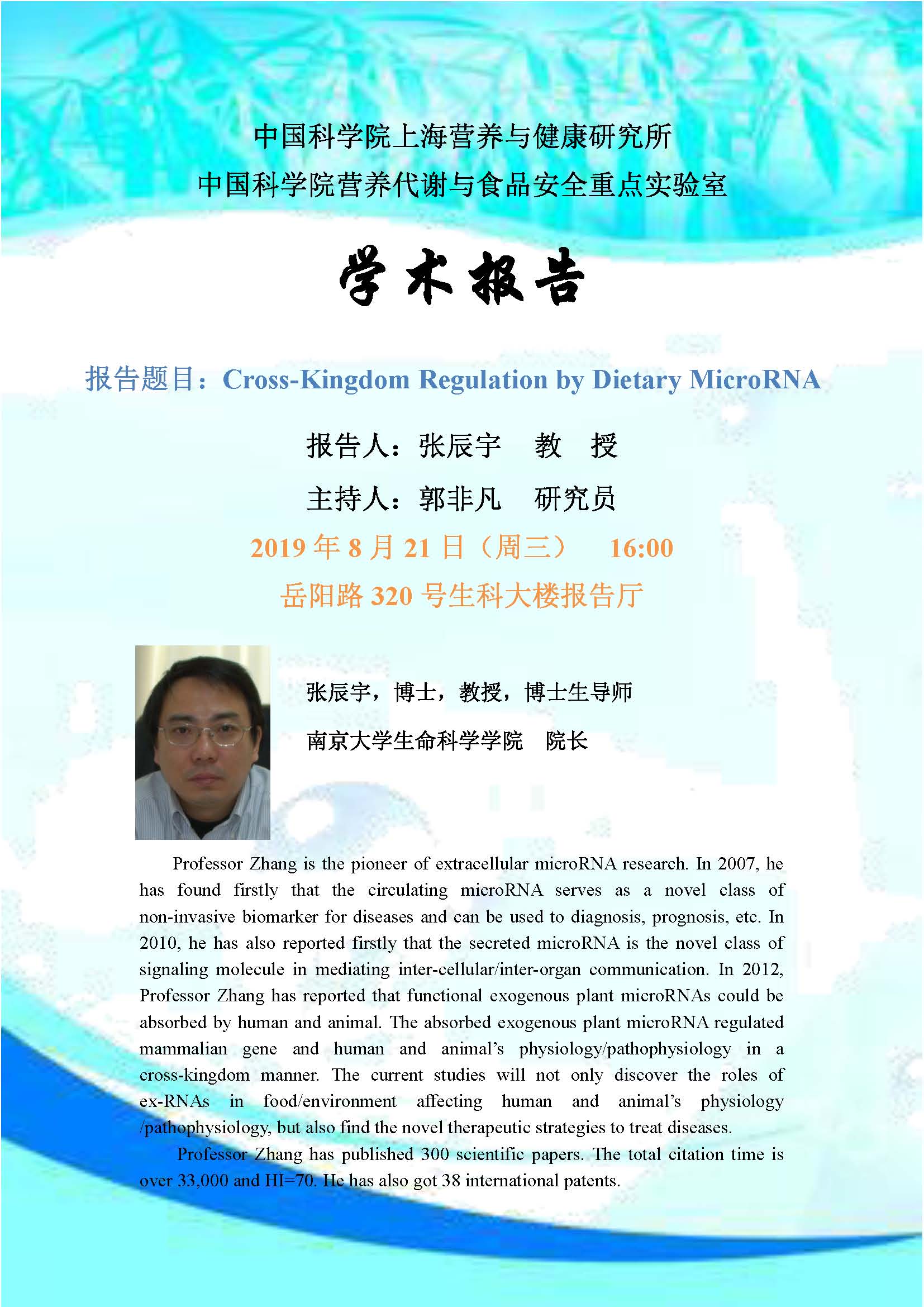 中科院上海營養(yǎng)與健康研究所固定學(xué)術(shù)報告:Cross-Kingdom Regulation by Dietary MicroRNA