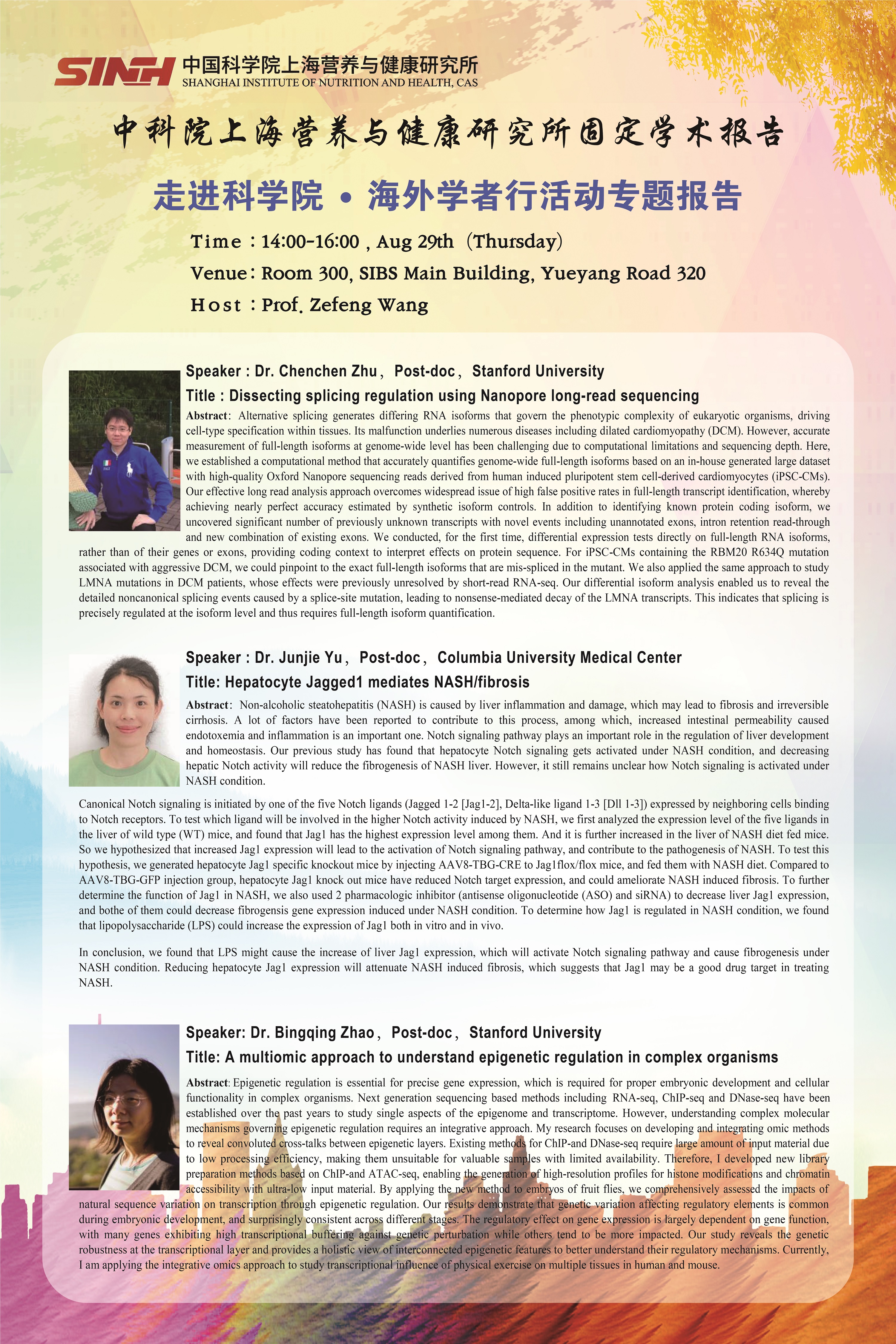中科院上海營(yíng)養(yǎng)與健康研究所固定學(xué)術(shù)報(bào)告:走進(jìn)科學(xué)院·海外學(xué)者行活動(dòng)專題報(bào)告