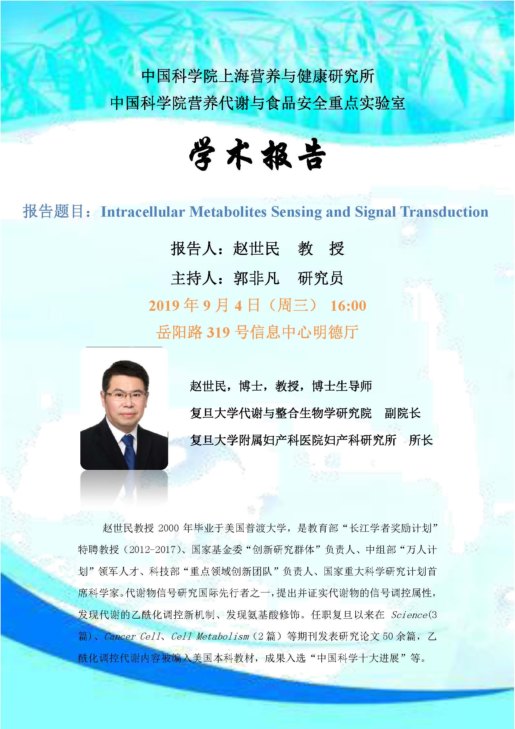 中科院上海營(yíng)養(yǎng)與健康研究所固定學(xué)術(shù)報(bào)告:Intracellular Metabolites Sensing and Signal Transduction
