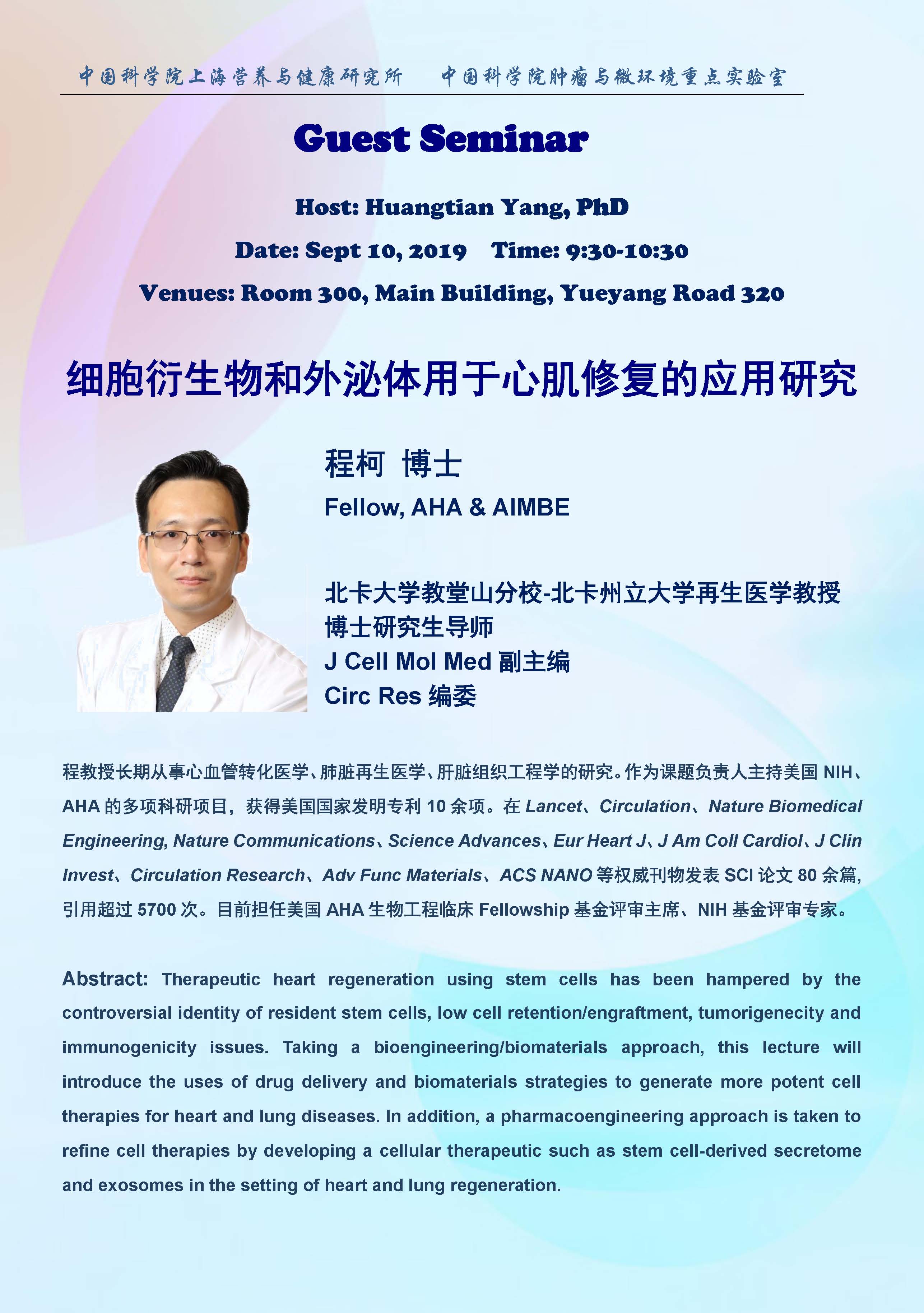 中科院腫瘤與微環(huán)境重點實驗室學術(shù)報告:細胞衍生物和外泌體用于心肌修復的應用研究