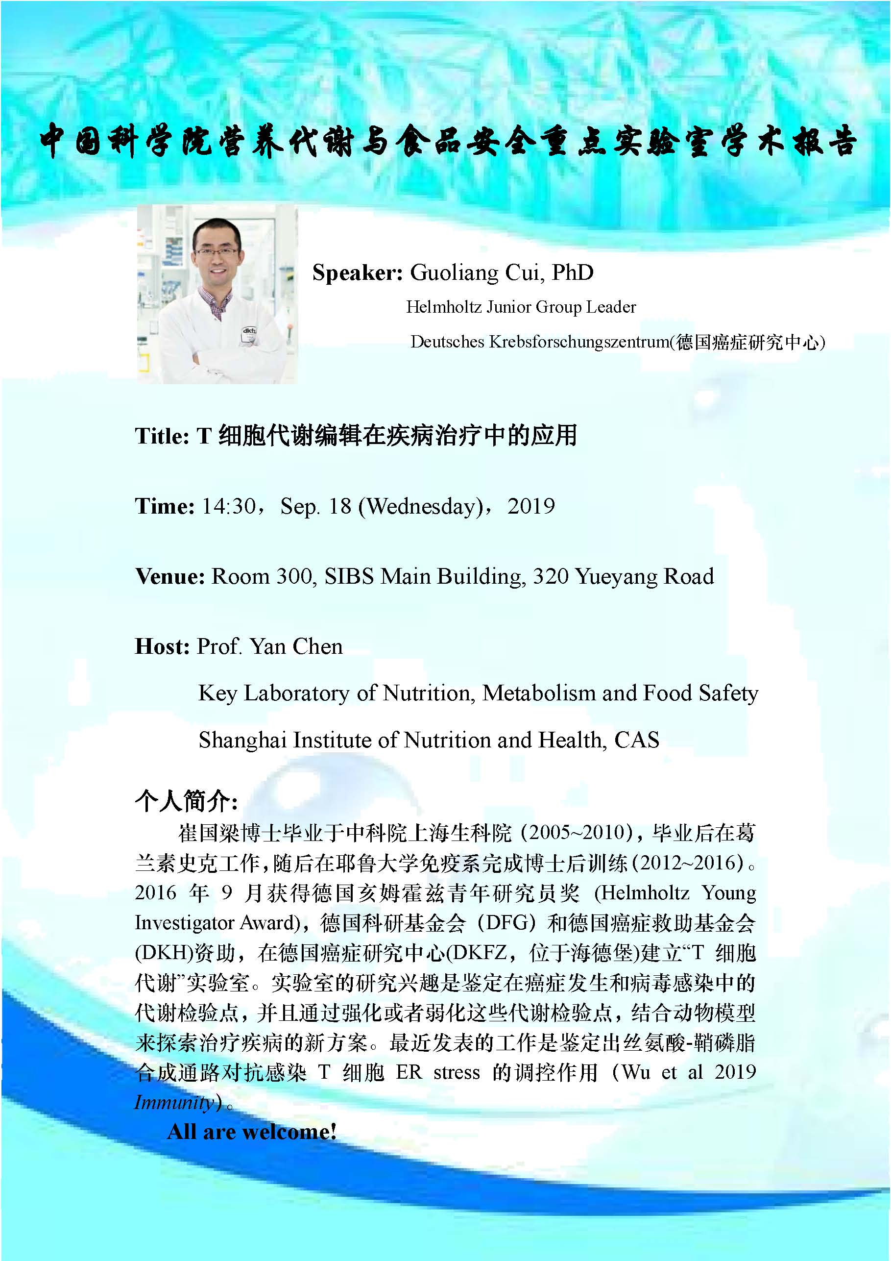 中國(guó)科學(xué)院營(yíng)養(yǎng)代謝與食品安全重點(diǎn)實(shí)驗(yàn)室學(xué)術(shù)報(bào)告:T細(xì)胞代謝編輯在疾病治療中的應(yīng)用