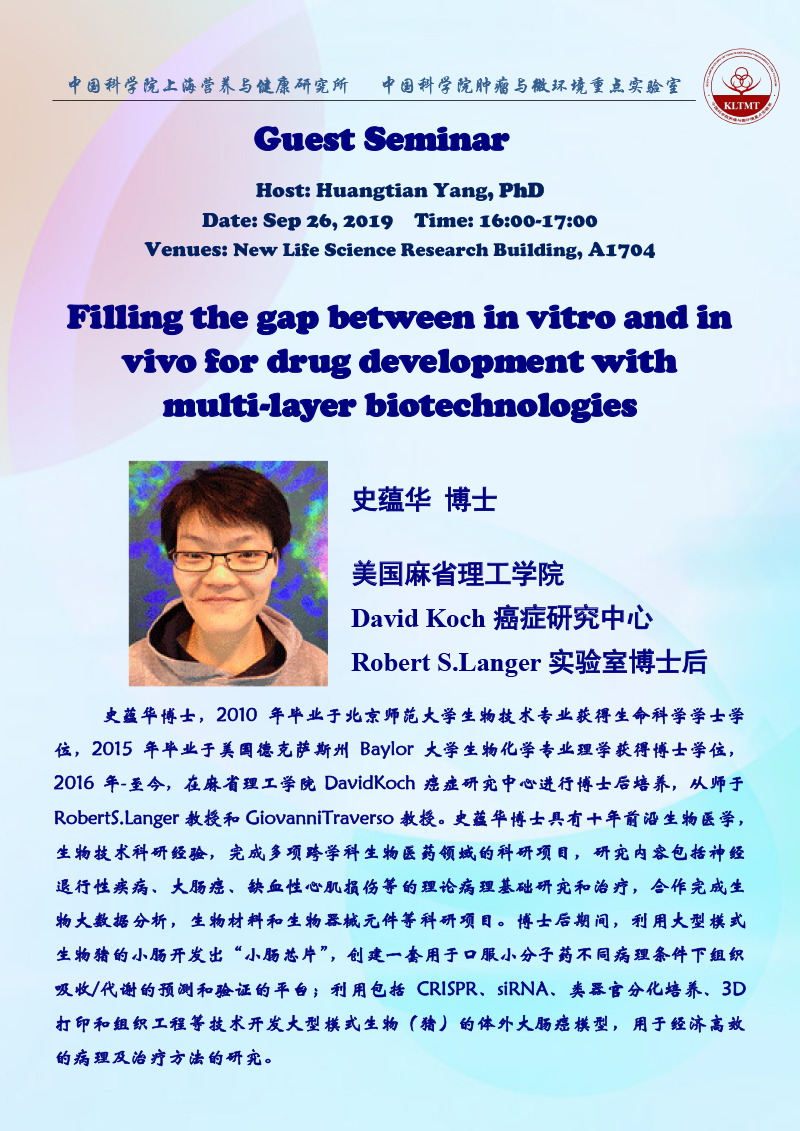 中科院腫瘤與微環(huán)境重點實驗室學(xué)術(shù)報告:Filling the gap between in vitro and in vivo for drug development with multi-layer biotechnologies