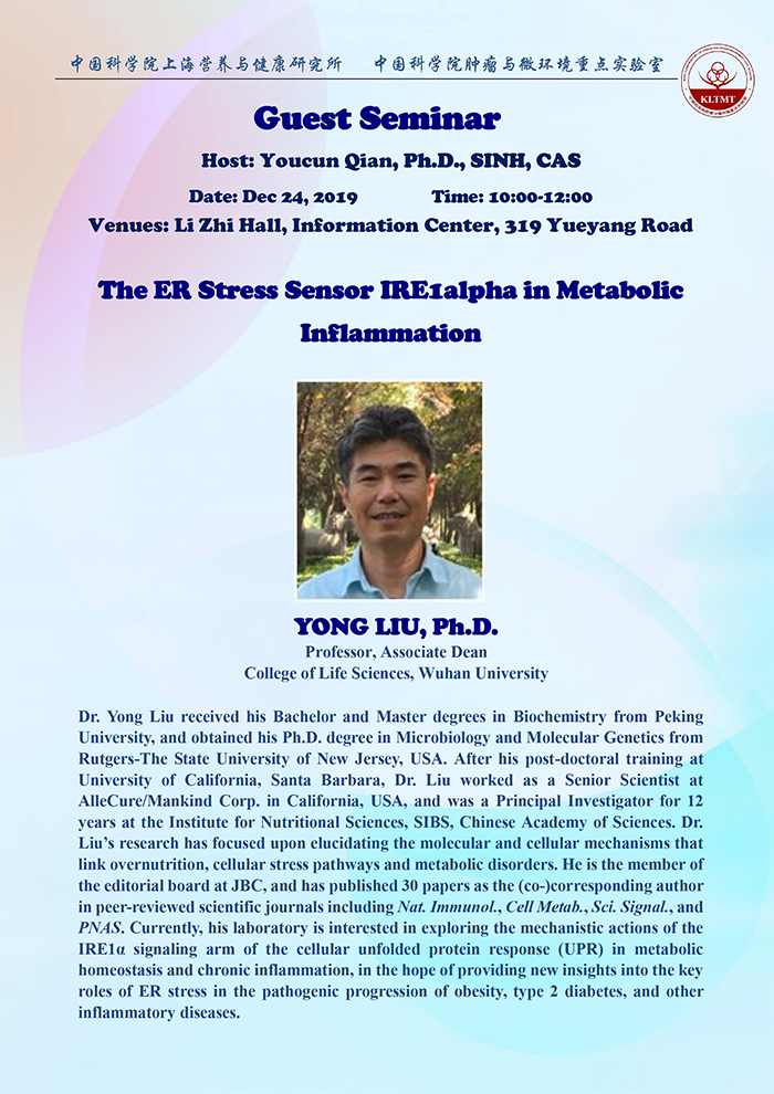 中科院腫瘤與微環(huán)境重點實驗室學術報告:The ER Stress Sensor IRE1alpha in Metabolic Inflammation