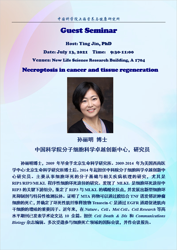 中科院上海營(yíng)養(yǎng)與健康研究所固定學(xué)術(shù)報(bào)告:Necroptosis in cancer and tissue regeneration