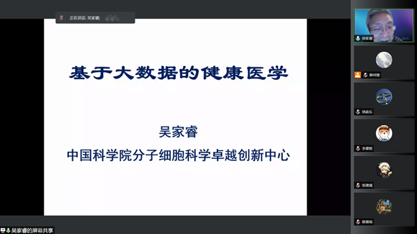 4月18日,營養(yǎng)與健康所“學(xué)術(shù)云聚會”系列學(xué)術(shù)報告活動的首期開講,拉開了疫情封控期間系列學(xué)術(shù)報告的帷幕。中國科學(xué)院分子細(xì)胞科學(xué)卓越創(chuàng)新中心研究員、國科大杭州高等研究院生命與健康科學(xué)學(xué)院執(zhí)行院長吳家睿應(yīng)邀作了題為《基于大數(shù)據(jù)的健康醫(yī)學(xué)》的學(xué)術(shù)報告。報告會由副所長胡國宏研究員主持,黨委書記、副所長瞿榮輝,學(xué)術(shù)副所長陳雁研究員出席報告會,營養(yǎng)與健康所全體PI、副研究員、博士后,以及慕名而來的其他兄弟研究院所學(xué)者等200余人聆聽了此次報告。
