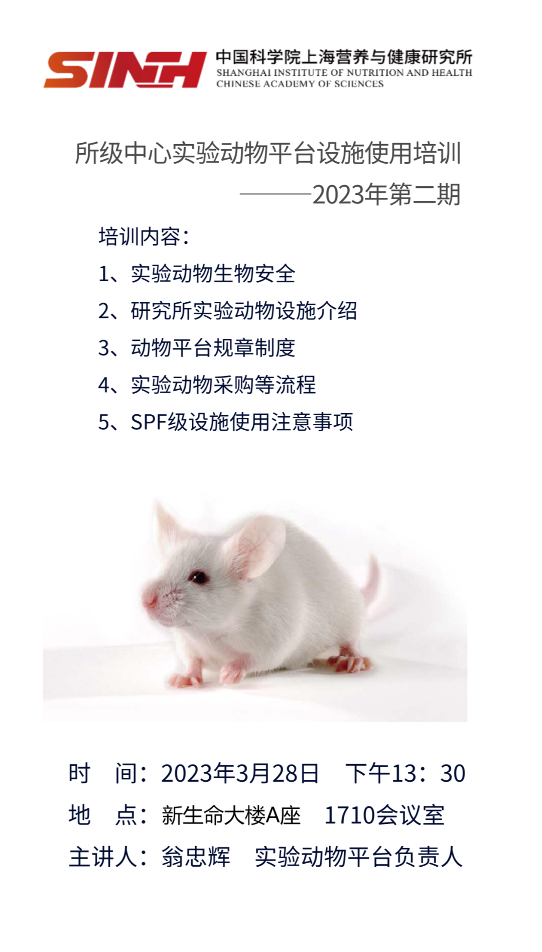 所級(jí)中心實(shí)驗(yàn)動(dòng)物平臺(tái)設(shè)施使用培訓(xùn)——2023年第二期