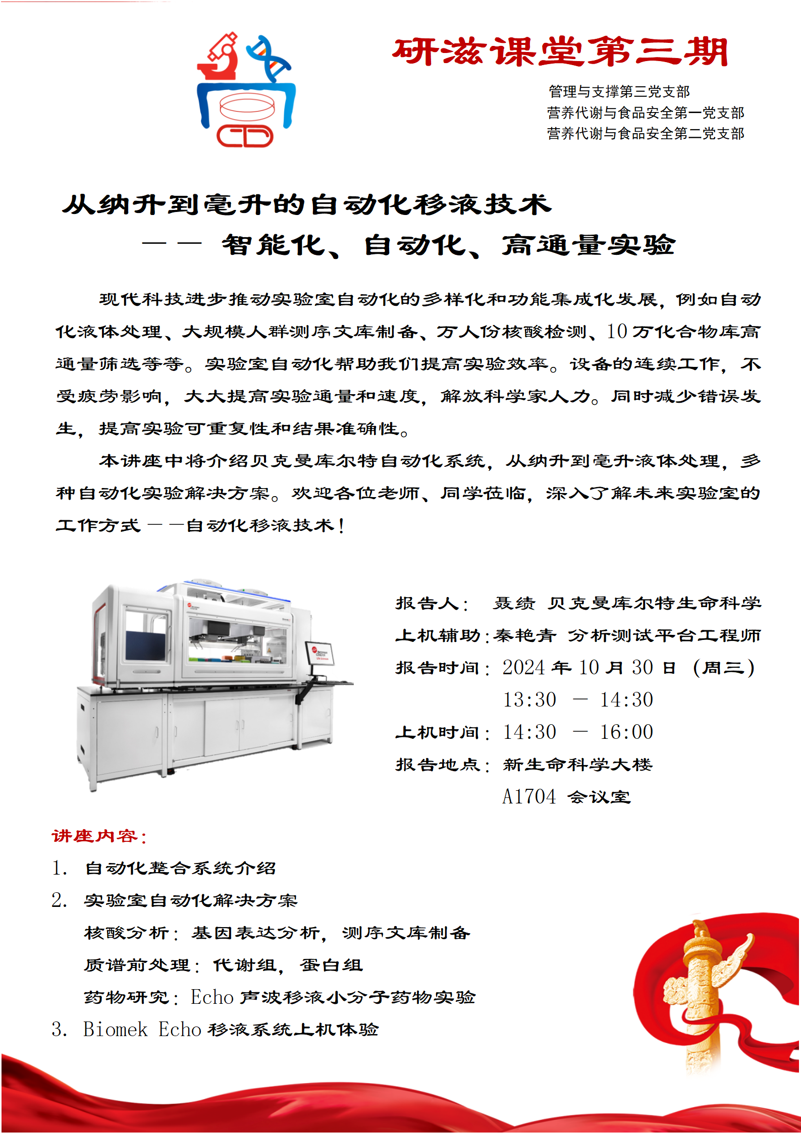 研滋課堂第三期|從納升到毫升的自動化移液技術——智能化、自動化、高通量實驗