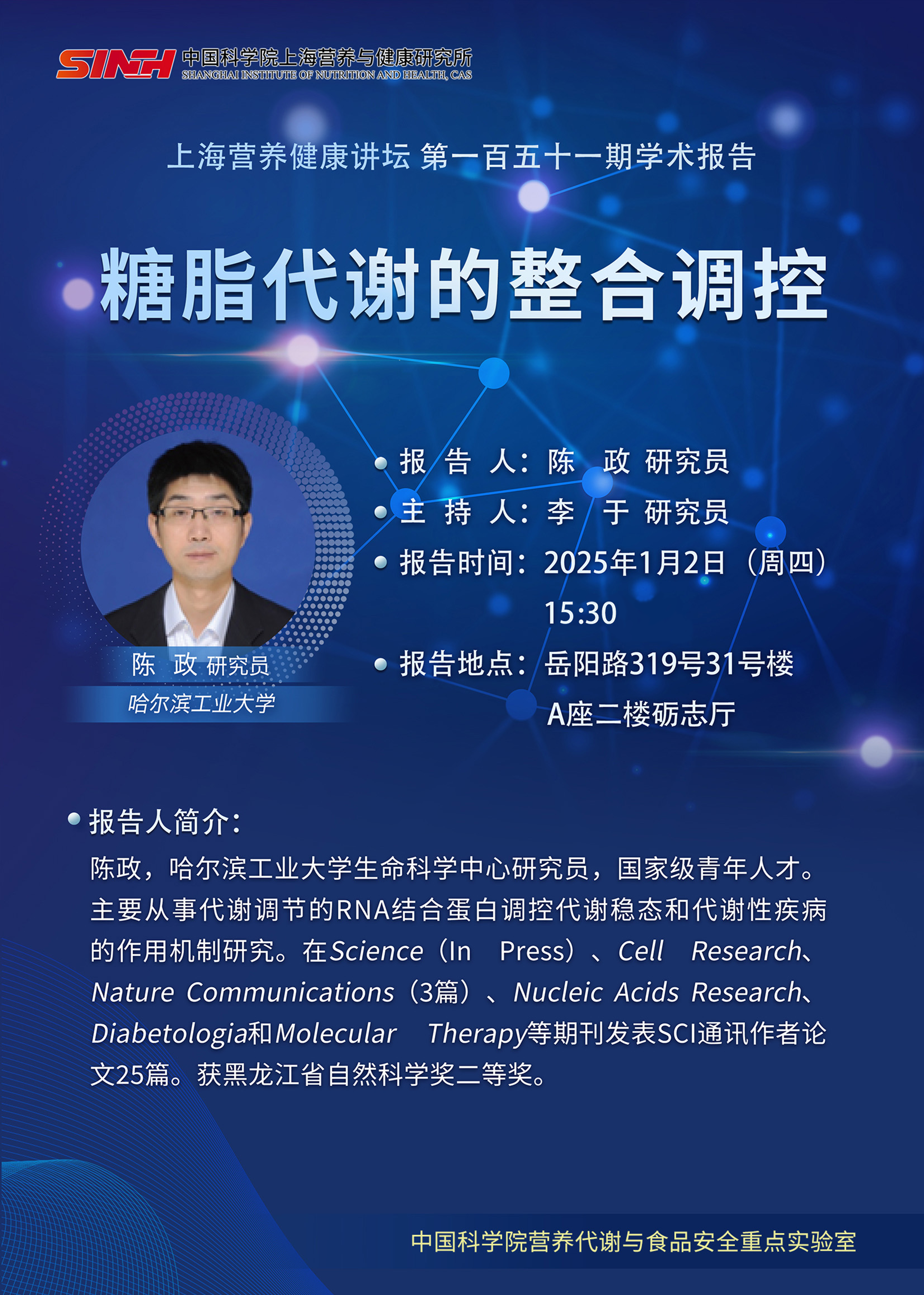 1月2日|糖脂代謝的整合調(diào)控-上海營(yíng)養(yǎng)健康講壇