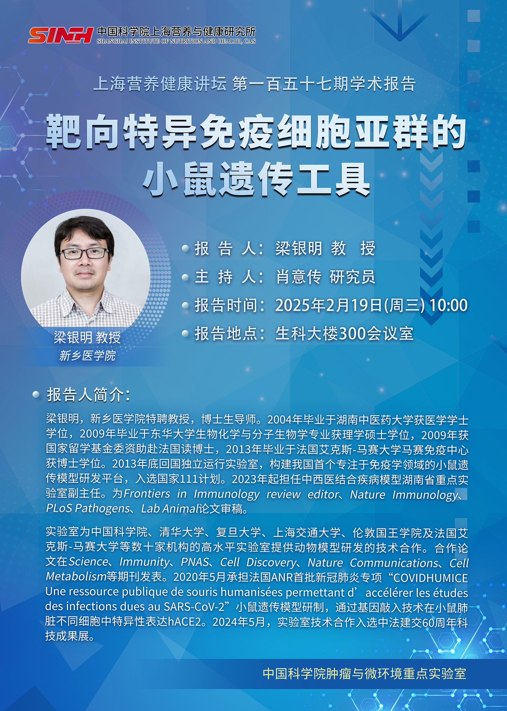 2月19日|靶向特異免疫細(xì)胞亞群的小鼠遺傳工具-上海營(yíng)養(yǎng)健康講壇