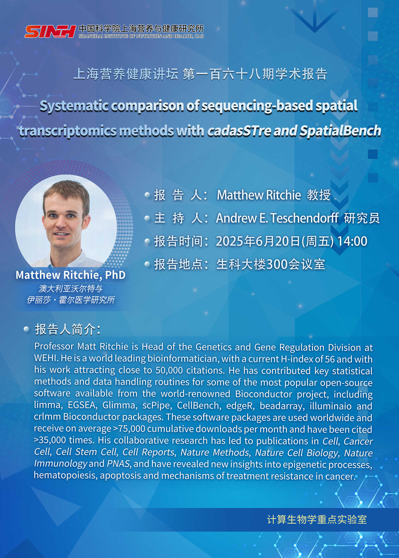 6月20日|Systematic comparison of sequencing-based spatial transcriptomics methods with cadasSTre and SpatialBench——上海營養(yǎng)健康講壇