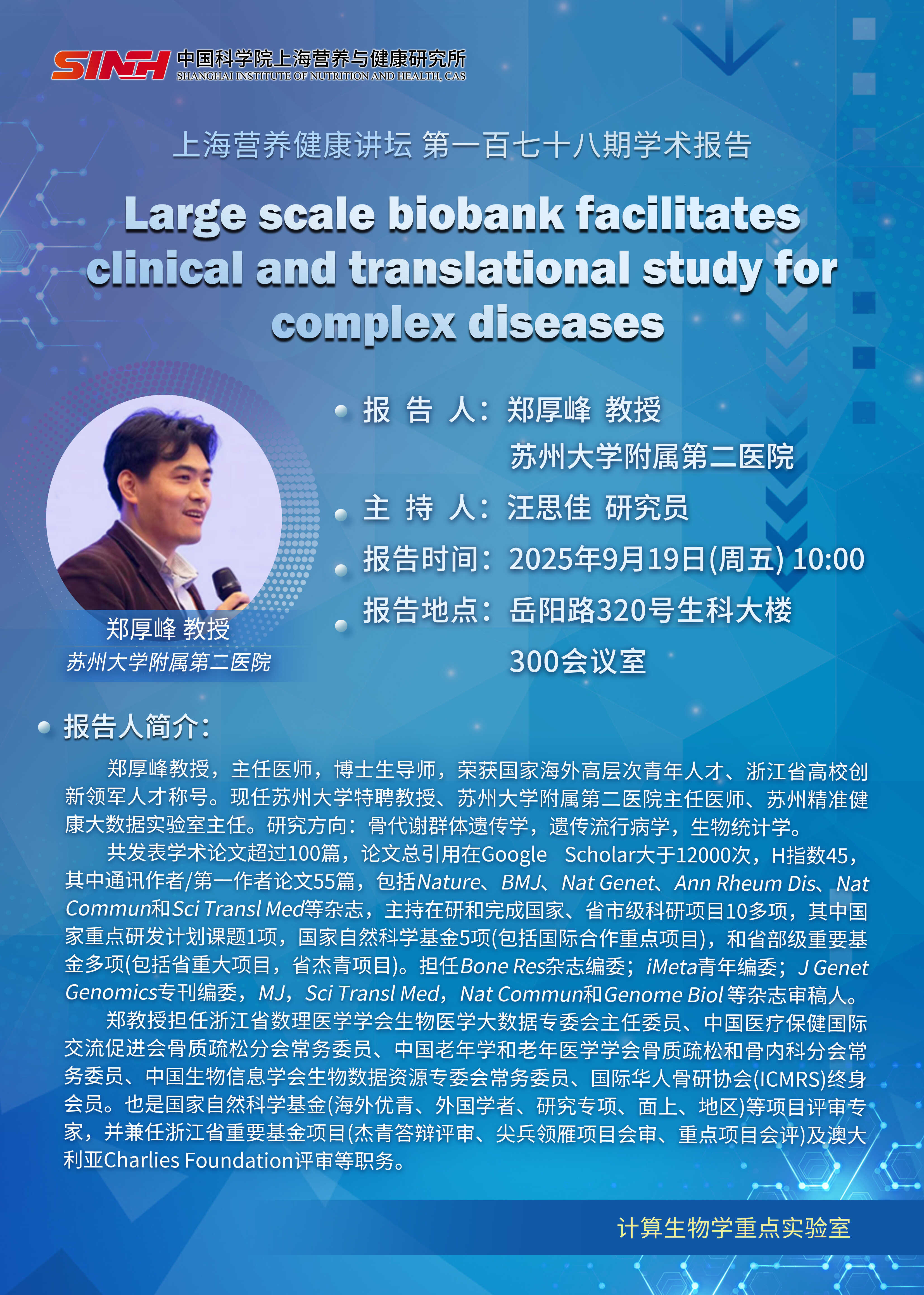 9月19日|Large scale biobank facilitates clinical and translational study for complex diseases-上海營養(yǎng)健康講壇